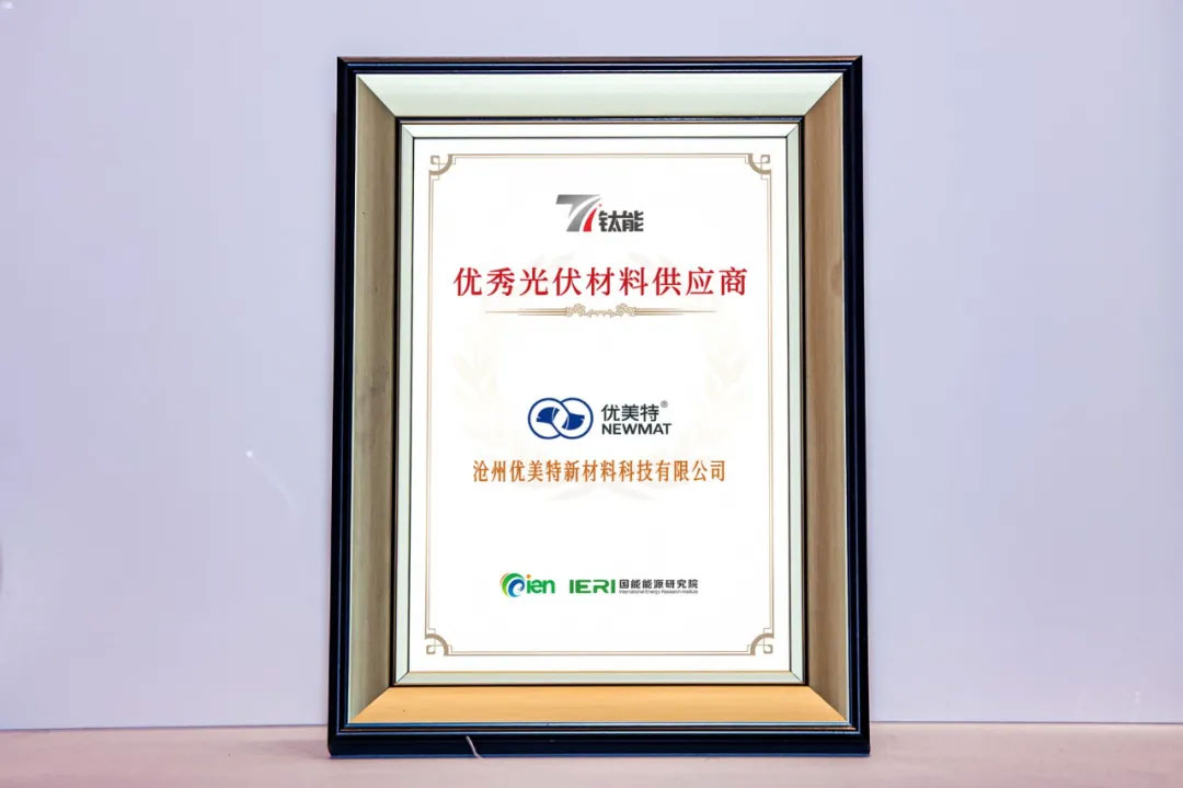 2025 年 10 月第十届光伏产业大会在上海圆满落幕。在这场汇聚全行业目光的盛会中,优美特凭借在光伏材料领域的卓越表现,荣获“优秀光伏材料供应商”奖项,这不仅是行业对优美特实力的高度认可,更是公司深耕光伏材料赛道的有力见证!